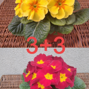 Oferta dotyczy zestawu 6 sztuk prymulek: 3 szt. czerwone i 3 szt. żółte