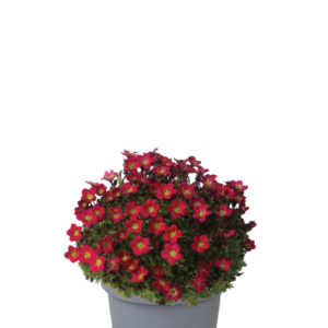 Skalnica Arendsa „Pixie Pan Red” charakteryzuje się badzo zwartym pokojem, tworząc zimozielony dywan obsypany intensywnie czerwonymi kwiatami.