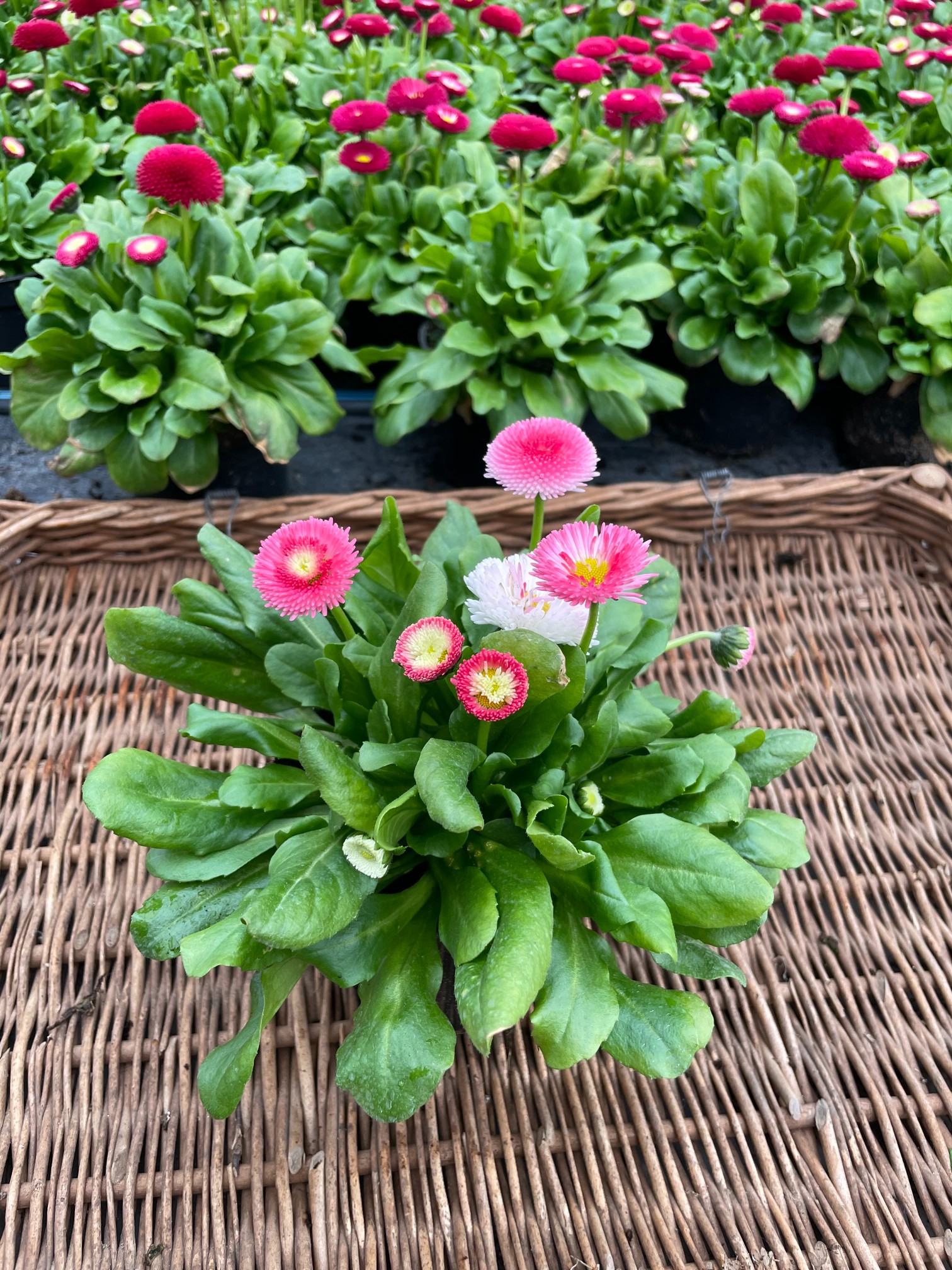 Oferta dotyczy 12 sztuk stokrotek: 4 szt. białej, 4 szt. różowej i 4 szt. czerwonej.