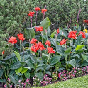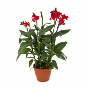 Oferta dotyczy 2 sztuk sadzonek Paciorecznika ogrodowego (Canna) czerwonego z zielonym liściem, każda w doniczce 2 litrowej.